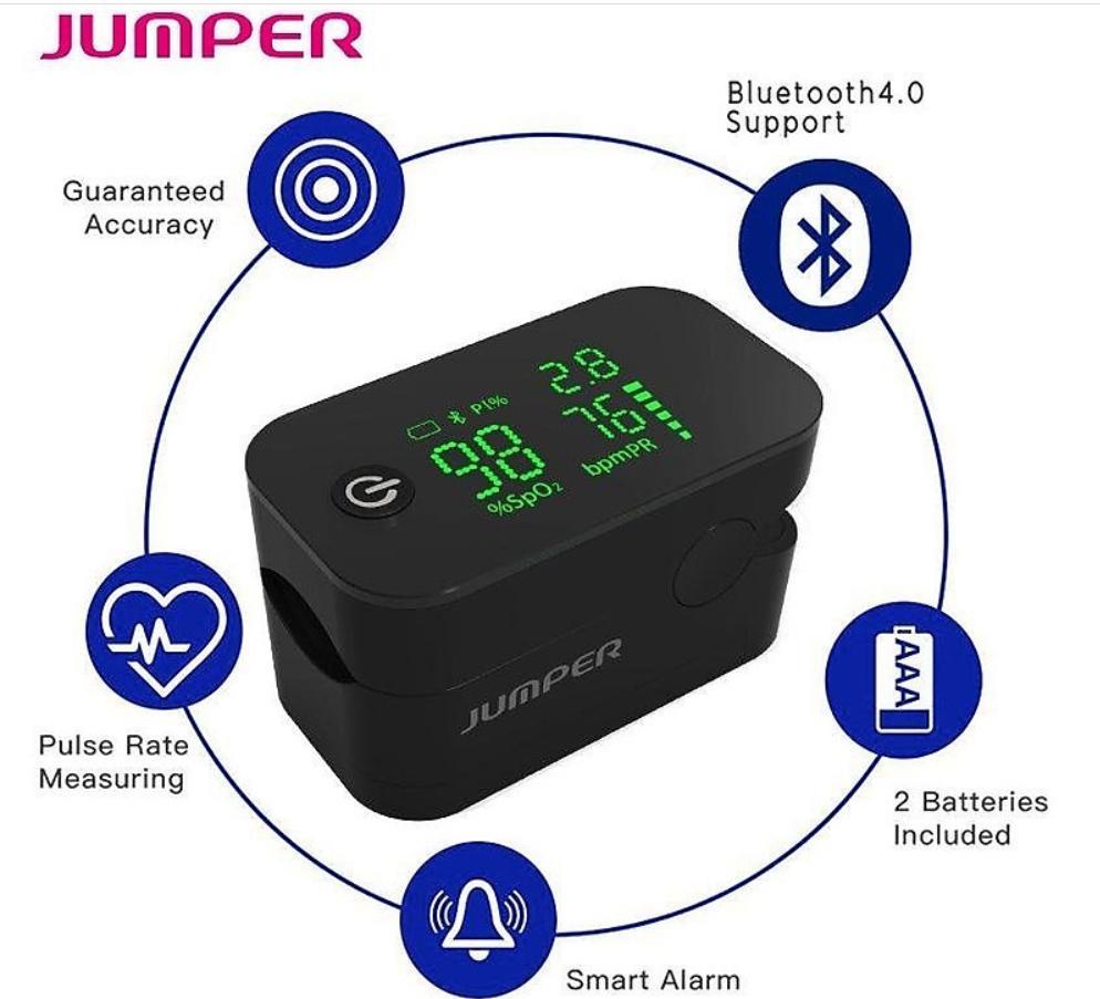 Jumper JPD 500G sẽ giúp đo độ bão hòa oxy trong máu và nhịp tim bằng phương pháp cảm biến quang học thông qua đầu ngón tay cho kết quả rất chính xác. Máy có hỗ trợ kết nối Bluetooth 4.0 với các thiết bị thông minh qua App Jumper Health để theo dõi kết quả đo.