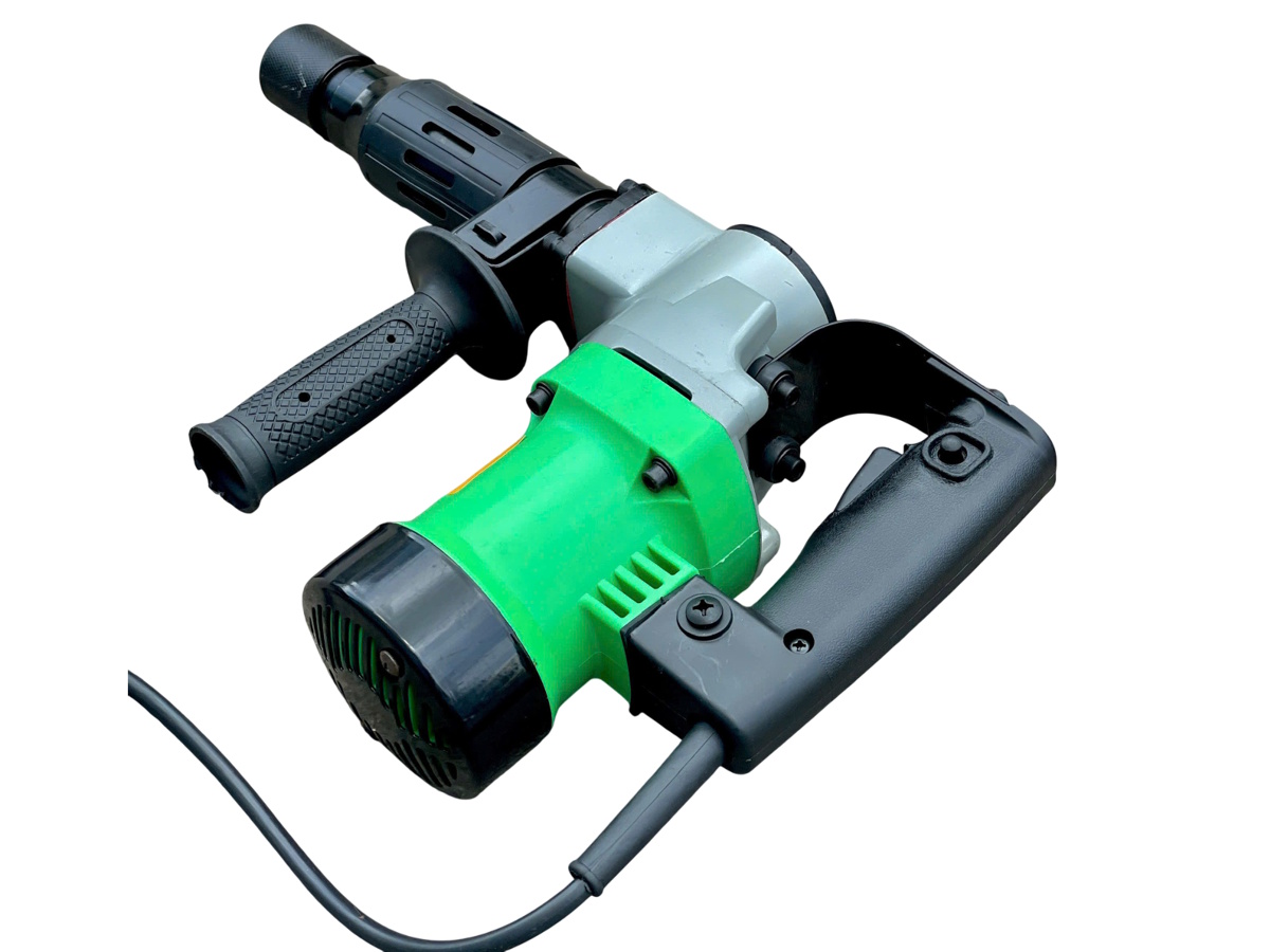 Máy đục bê tông Kazaki KZ0810E có lớp vỏ ngoài bằng nhựa cao cấp kết hợp kim loại, chống va đập hiệu quả. Tay cầm chính và tay phụ đều được bọc cao su chống trượt, mang lại cảm giác an toàn khi sử dụng, kể cả trong môi trường công trường nhiều bụi bẩn.