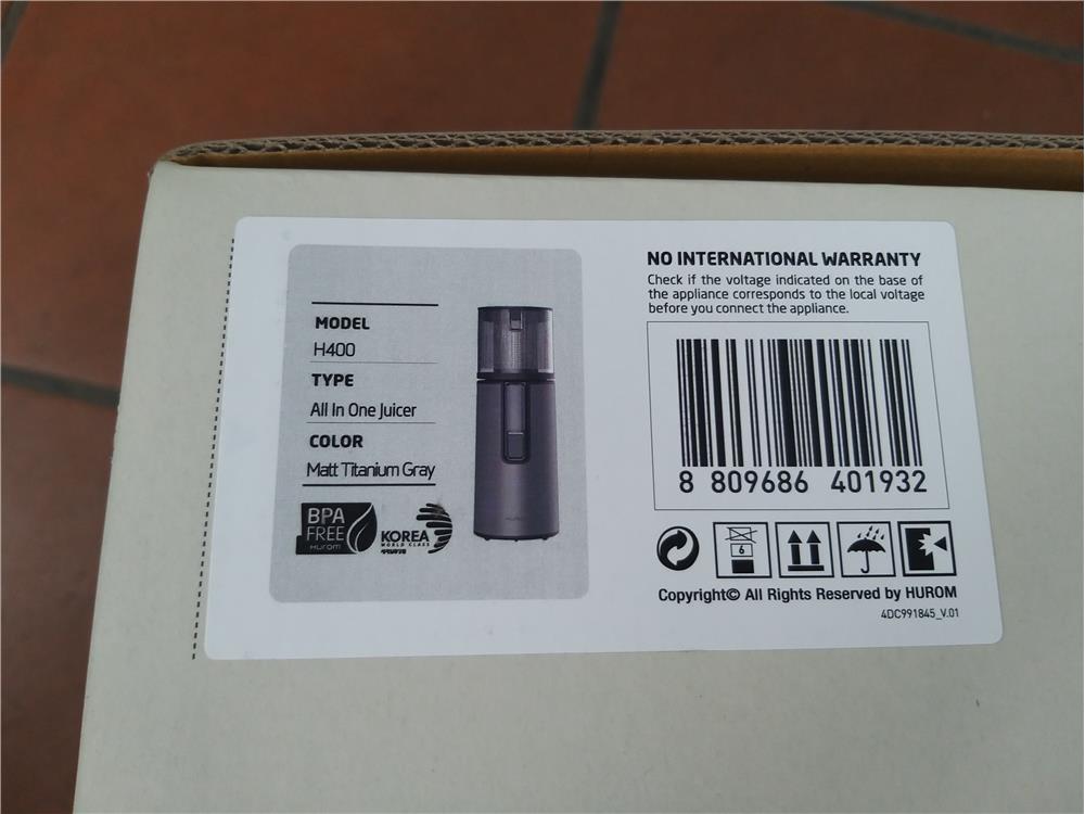 Hurom H400 có kiểu dáng trụ đứng nhỏ gọn, chiều cao khoảng 47cm và trọng lượng chỉ 6.2kg, dây điện có chiều dài 1.4m, dễ dàng di chuyển trong quá trình sử dụng.