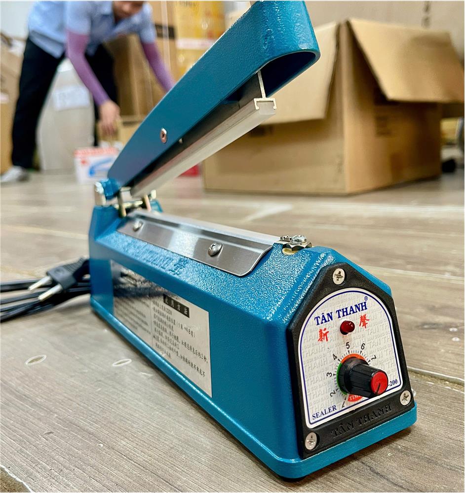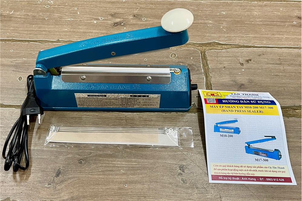 Máy hàn miệng túi Tân Thanh M10 - 200mm chuyên dùng trong việc ép viền, ép miệng bao bì các túi nylon như PP, PE, PA, PVC, OPP và các loại màng ghép phức hợp khác.