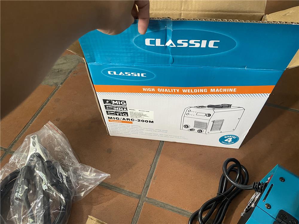 Máy hàn MIG Classic MIG/ARC-200M gồm các phụ kiện đi kèm như: Dây mig 1kg, súng mig 2m, kìm hàn 2m, kẹp mass 1.5m, mặt nạ hàn và búa gõ xỉ.
