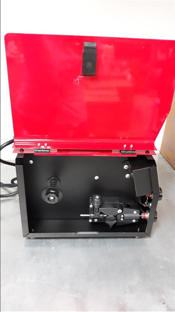 Vỏ máy hàn được làm từ kim loại và phủ sơn tĩnh điện chống han gỉ, đảm bảo độ bền cho các linh kiện trong máy. Mặt trước có 3 jack cắm kìm hàn, dây khí và kẹp mass.