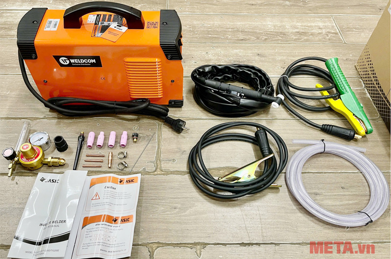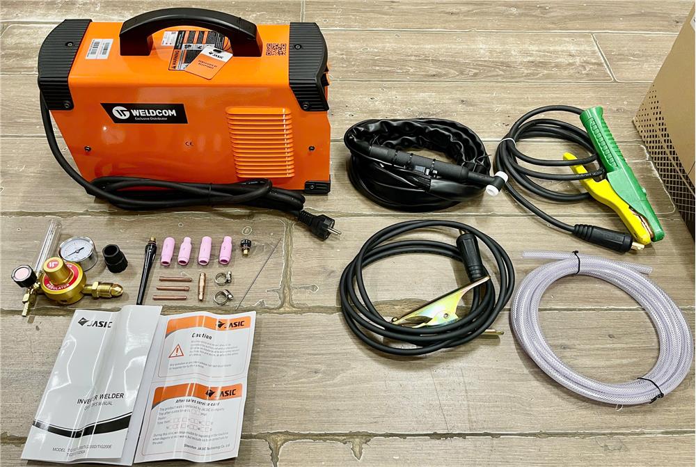 Người dùng không cần phải sắm thêm nhiều dụng cụ rời rạc, bởi máy hàn Jasic Tig 250A W227 đã được trang bị sẵn phụ kiện cần thiết: