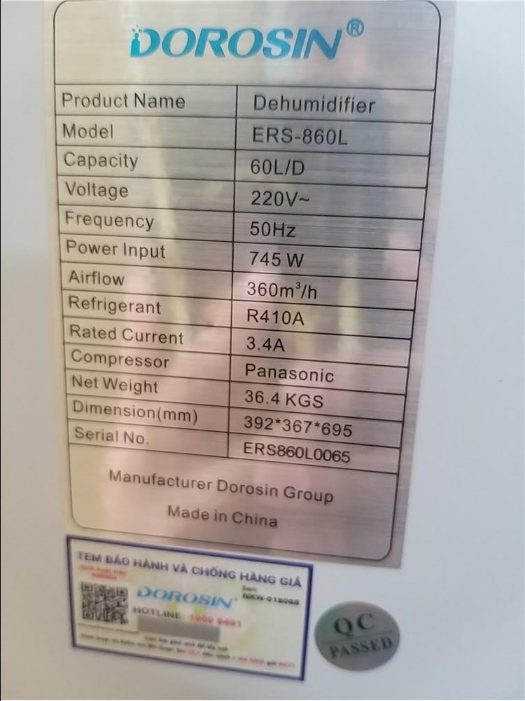 Đánh giá máy hút ẩm công nghiệp Dorosin ERS-860L