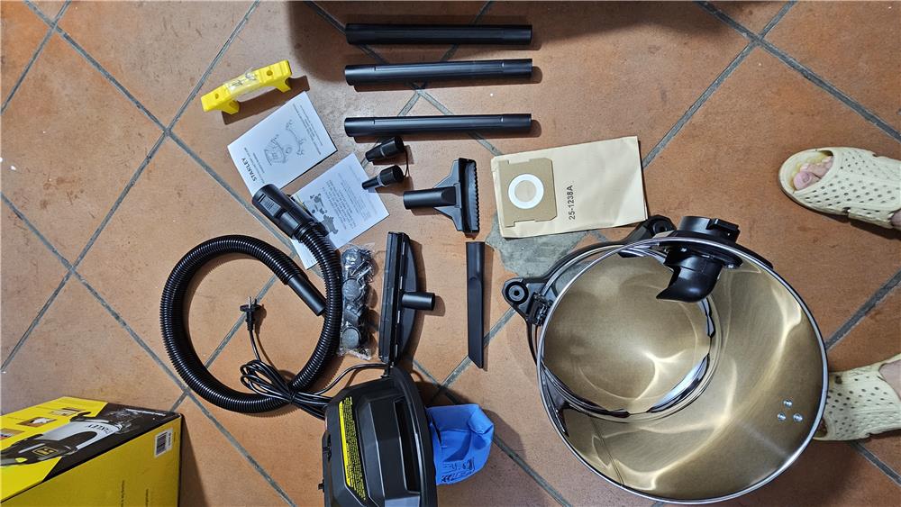 Thùng chứa bụi có dung tích 15 lít, được làm từ thép không gỉ cứng cáp, chống va đập tốt, dễ dàng vệ sinh. Máy được trang bị đầy đủ các phụ kiện như đầu hút sàn, ống nối cứng, ống nối mềm, ... tiện lợi khi làm sạch các bụi bẩn ở nhiều dạng trên nhiều vị trí khác nhau.