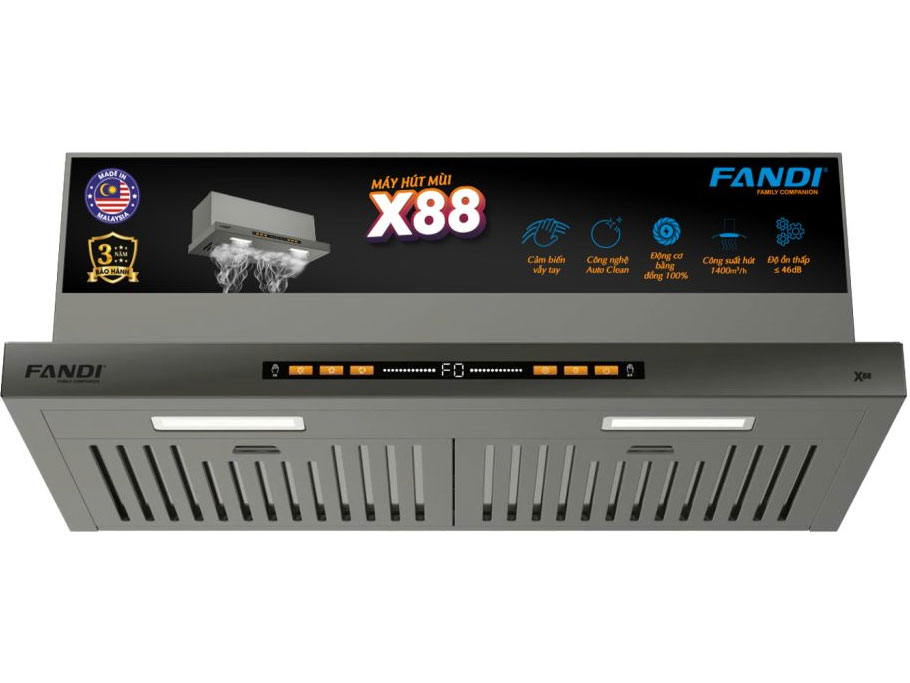 Với thiết kế âm tủ hiện đại, công suất hút mạnh mẽ cùng nhiều công nghệ tiện ích như Smart Motion, Booster và Heating Auto Clean, máy hút mùi Fandi FD-X88 là lựa chọn đáng cân nhắc cho những căn bếp hiện đại.