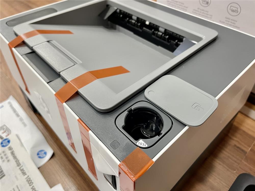 Máy in HP đơn năng 100A có khay nạp giấy 150 tờ, khay chứa giấy đã in 100 tờ, cho phép người dùng in ấn liên tục mà không cần phải nạp giấy hoặc lấy giấy ra nhiều lần.