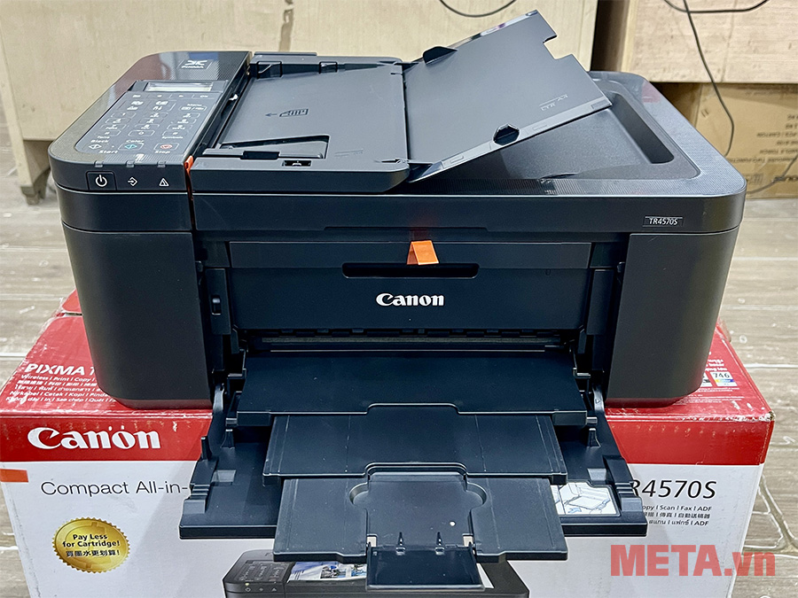 - Máy in Canon TR4570S được cấu tạo với các đường nét tinh tế, hài hòa, gọn nhỏ nên phù hợp cho nhiều không gian văn phòng.