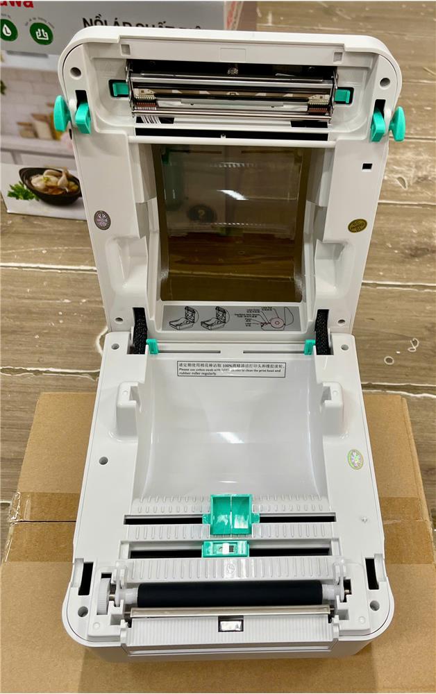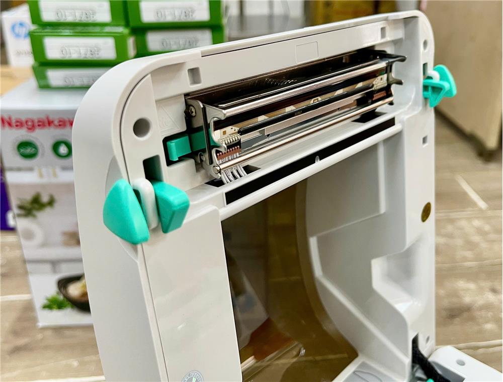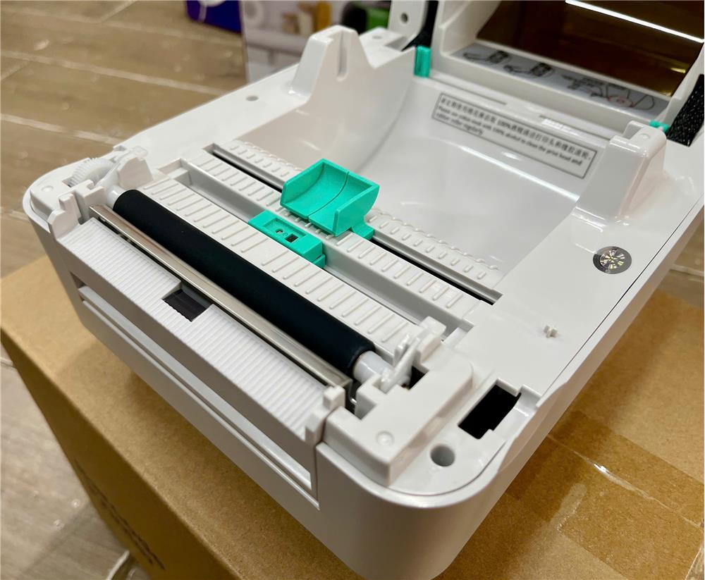 Bên trong máy là khoang chứa giấy rộng, hỗ trợ cuộn tem có đường kính lên tới 10cm, giúp bạn in được nhiều tem mà không cần thay cuộn thường xuyên.