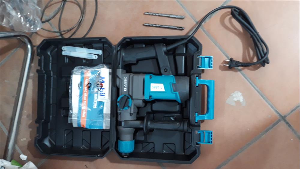Thao tác lắp mũi khoan, mũi đục nhanh chóng, được hỗ trợ thêm tay cầm phụ giúp giảm rung hiệu quả trong khi làm việc. Máy khoan có kích thước là 26cm x 36cm x 9cm, được bảo quản trong hộp nhựa, có quai xách để di chuyển.