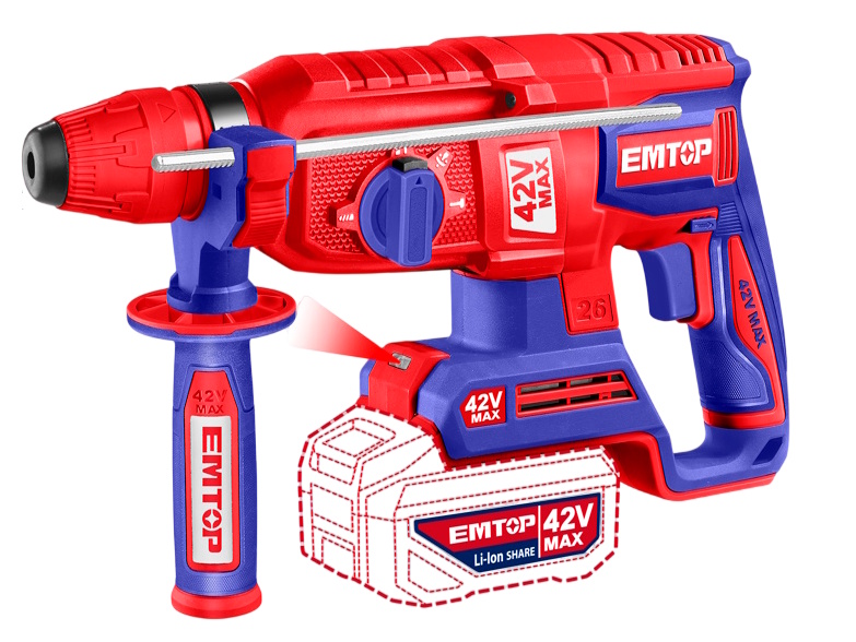 Với động cơ không chổi than, lực đập mạnh 2.5J, đầu kẹp SDS Plus cùng nguồn pin 42V, Emtop ELRH422682 là lựa chọn hoàn hảo cho những ai cần một chiếc máy khoan bê tông đa năng, bền bỉ và hiệu quả cao.