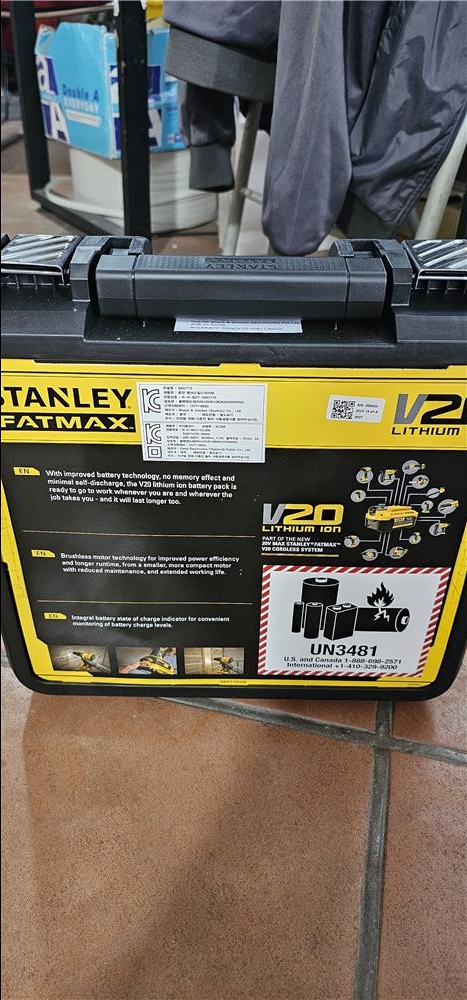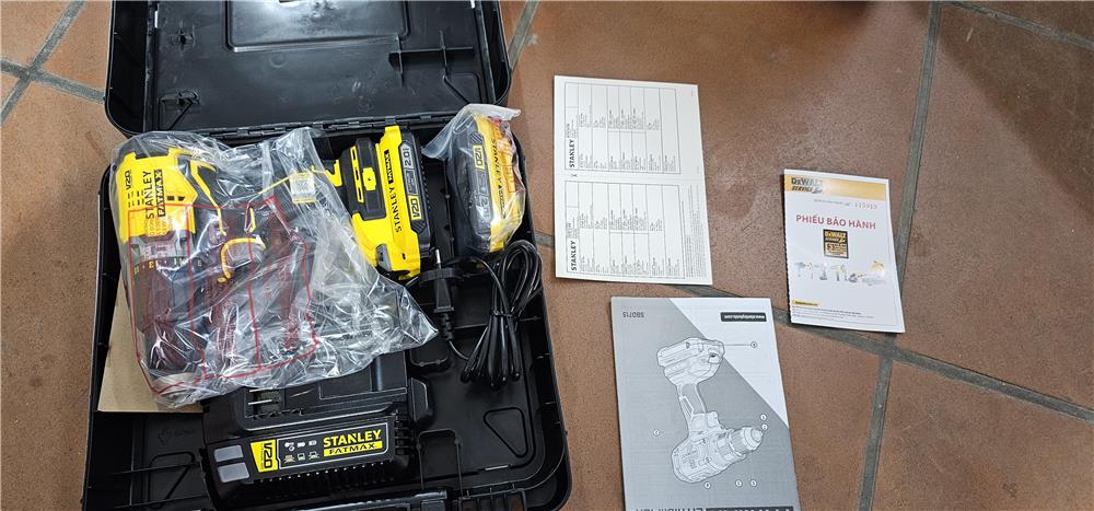 - Máy khoan Stanley dùng pin 20V Lithium-ion, dung lượng 2Ah.
