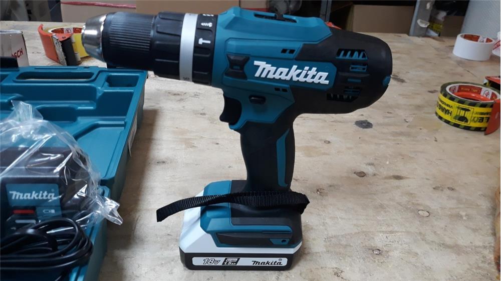 Máy khoan Makita dùng pin 18V, 1.5Ah, pin Li-ion siêu bền. Trọng lượng máy khoan nhẹ chỉ nặng 1.7kg cầm thao tác khoan vật liệu hay bắt vít rất thoải mái, dễ thao tác.