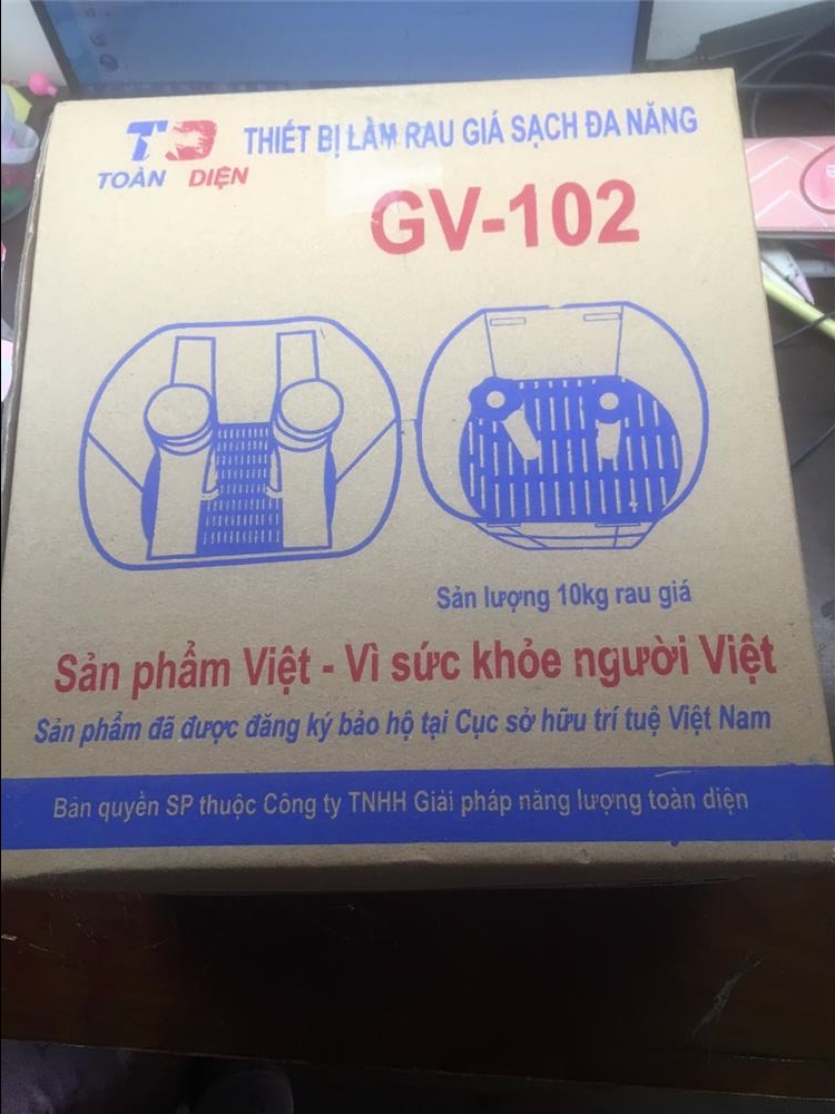 Máy làm giá đỗ GV-102 công nghiệp sản xuất tại Việt Nam do TS Đỗ Ngọc Chung (Giảng viên Đại Học Công nghệ - ĐHQG Hà Nội) sáng chế và đã được kiểm nghiệm, đăng ký bảo hộ tại Cục sở hữu trí tuệ Việt Nam nên người sử dụng hoàn toàn yên tâm khi sử dụng sản phẩm này.