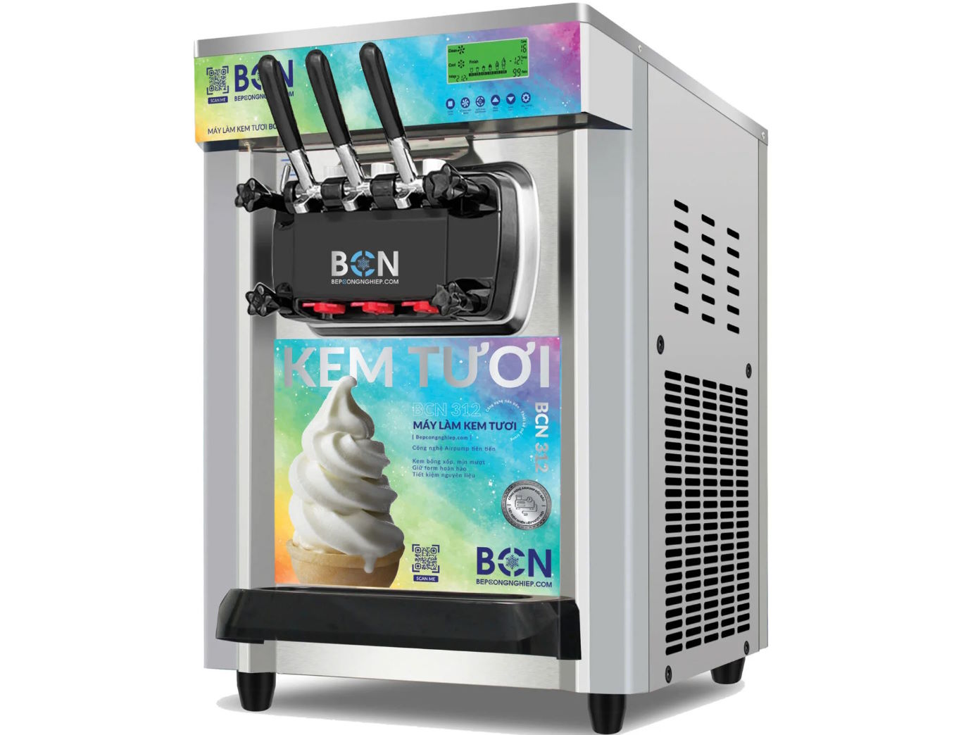 Điểm nổi bật khiến BCN 312 trở thành “best-seller” chính là hệ thống 3 vòi lấy kem độc lập cùng 2 ngăn chứa 6L. Thiết kế này cho phép bạn phục vụ cùng lúc nhiều hương vị khác nhau như vani, socola, dâu, matcha, xoài, cốm…