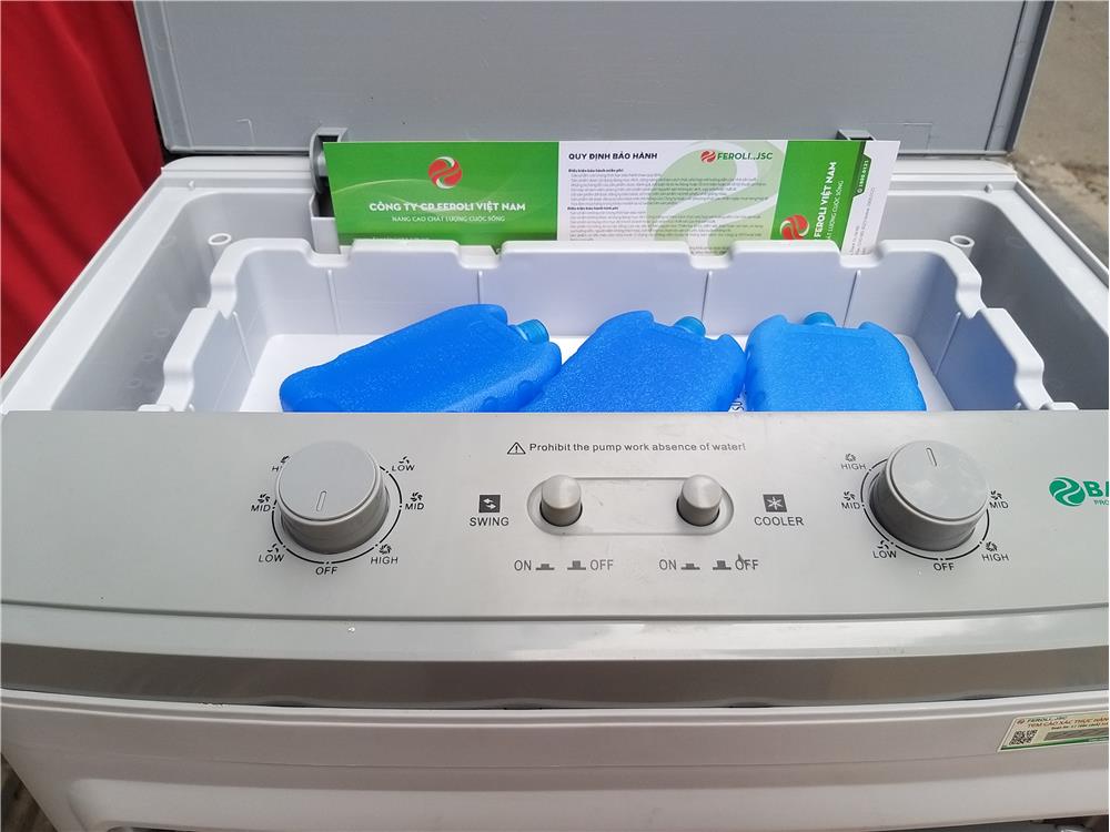 Máy làm mát Bamboo BB2T có dung tích bình nước 35 lít nên có thể vận hành liên tục 8 - 9 tiếng đồng hồ mà không phải châm thêm nước. Cửa đổ nước ở mặt bên hông máy.