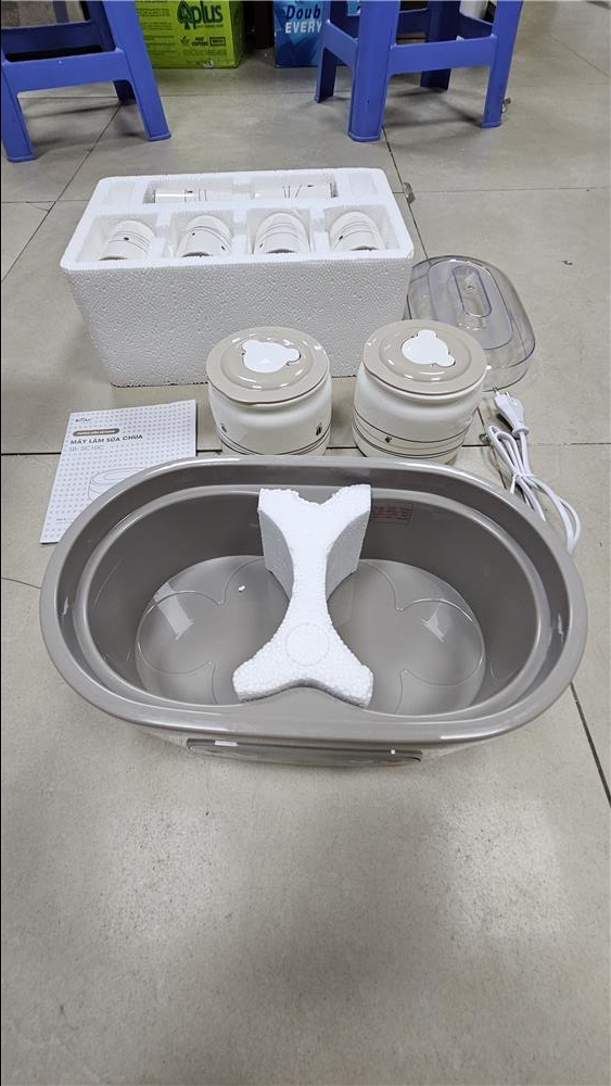 Đậy kín cốc chứa nguyên liệu đã chuẩn bị, sau đó đặt vào nồi lên men của máy làm sữa chua, đậy nắp trên, kết nối nguồn điện và tiến hành lên men.