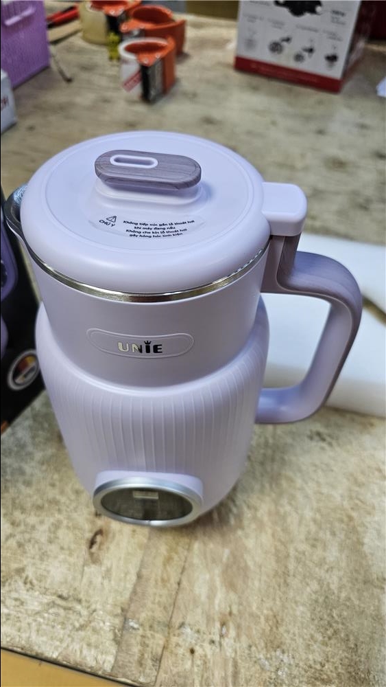 Thêm vào đó, trọng lượng máy làm sữa hạt UNIE UMB08 chỉ khoảng 1,3kg nên bạn có thể mang theo tới mọi nơi để sử dụng. Lớp vỏ ngoài của máy có tông màu tím nhạt rất thời thượng, trang nhã, nhẹ nhàng, phù hợp với mọi không gian nội thất hiện nay. Đặc biệt, lớp vỏ này được làm bằng chất liệu PP chắc chắn, chịu nhiệt, cách điện tốt, có độ bền cao, hạn chế trầy xước và dễ vệ sinh.