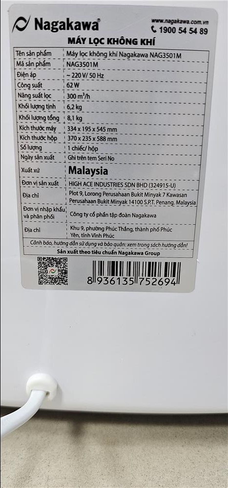 Đánh giá Máy lọc không khí 5 trong 1 Nagakawa NAG3501M