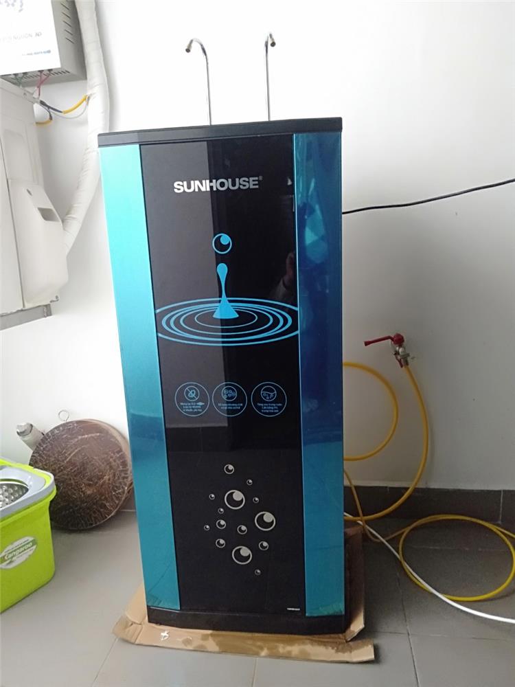- Chiếc máy lọc nước RO Sunhouse này có kiểu dáng tủ đứng hiện đại, sang trọng.