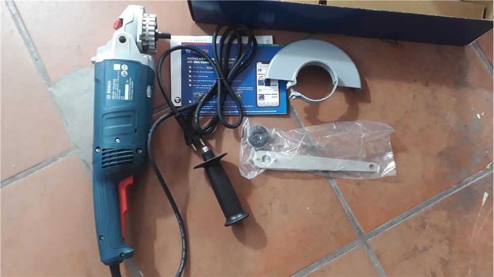 - Máy mài góc Bosch có trang bị tay cầm phụ, vành chắn bảo vệ.