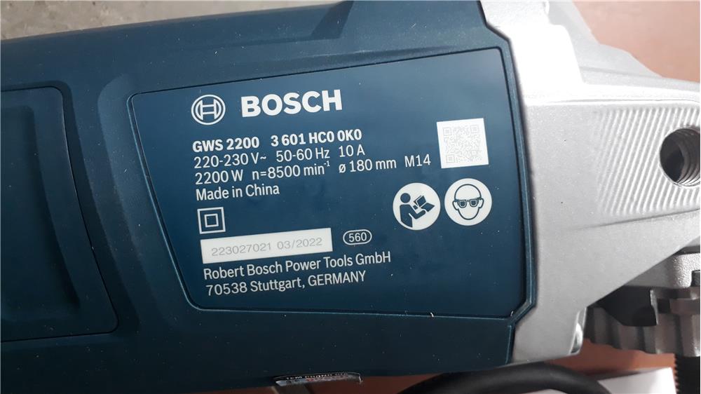 - Bosch GWS 2200-180 (06018C00K0, 2200-180H) là dòng máy mài góc chuyên nghiệp dùng cho công trình, xưởng sửa chữa cơ khí, lắp ráp, chế tạo.
