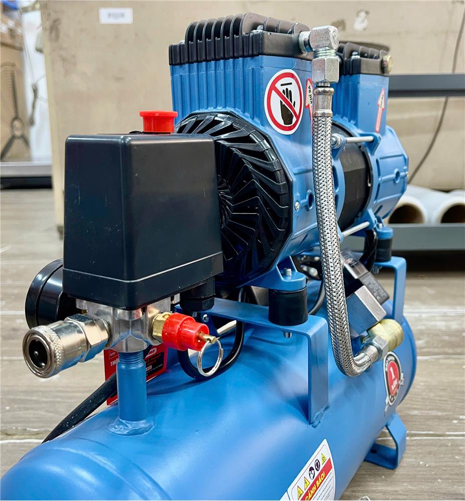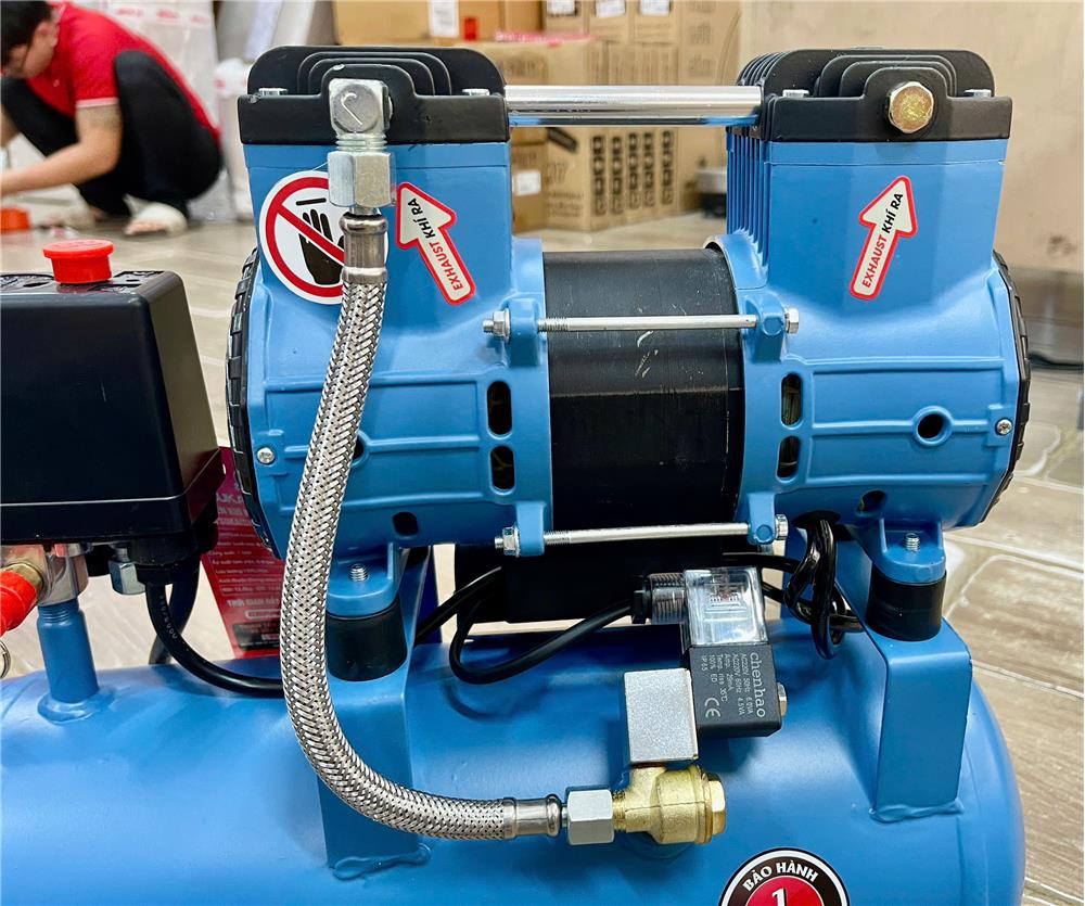 Máy nén khí sử dụng Motor dây đồng làm việc bền bỉ, tuổi thọ cao và cho độ ồn chỉ bằng 1/3 so với máy nén khí có dầu.