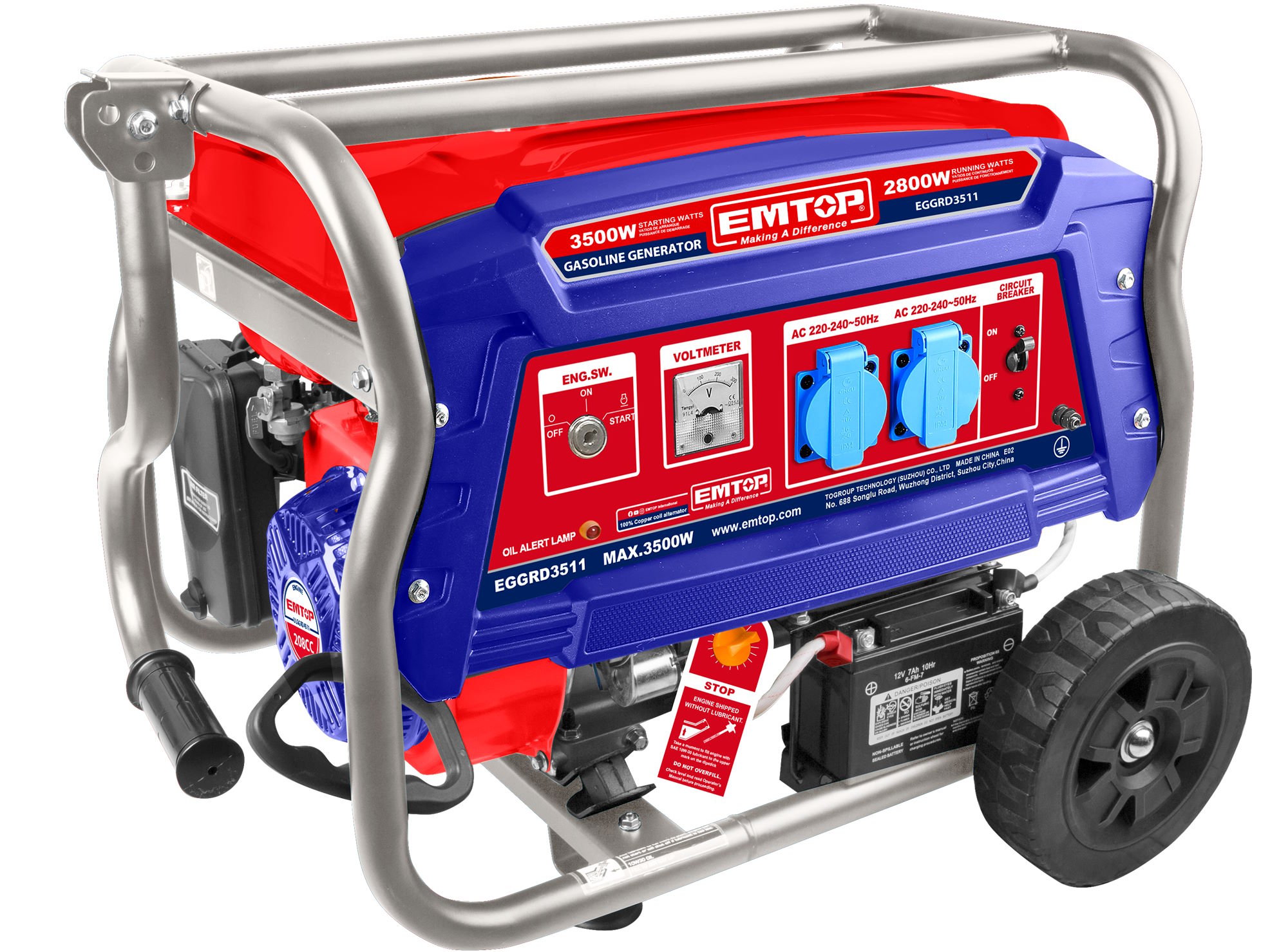 Máy phát điện chạy xăng Emtop EGGRD3511 là giải pháp cung cấp điện dự phòng hiệu quả cho gia đình, cửa hàng, công trình xây dựng và trang trại. Với công suất định mức 2.8kW và công suất tối đa lên đến 3.5kW, sản phẩm đáp ứng tốt nhu cầu vận hành đồng thời nhiều thiết bị điện thiết yếu như tủ lạnh, quạt, máy bơm nước, đèn chiếu sáng hay các thiết bị điện cầm tay.