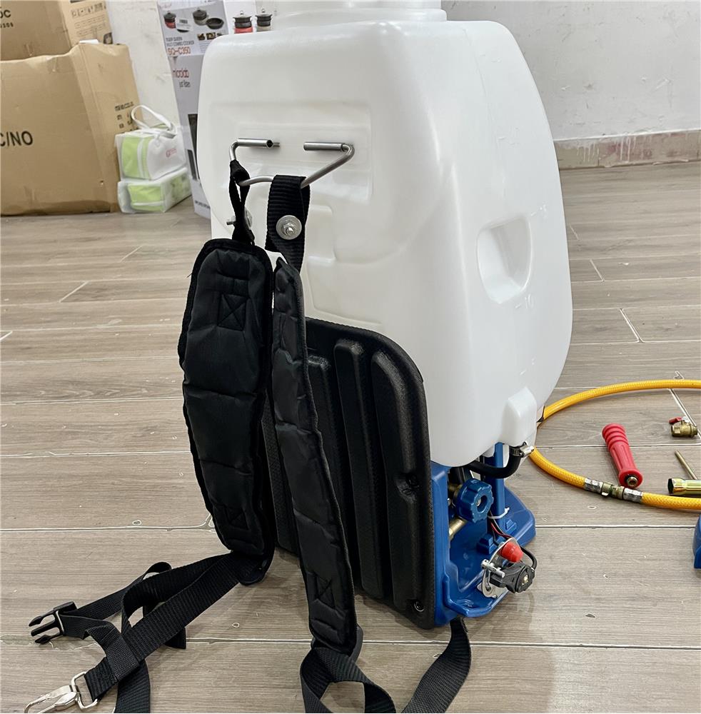 Bình chứa hóa chất có dung tích 25 lít, được làm từ nhựa chống ăn mòn cho độ bền cao. Máy phun thuốc có áp lực phun từ 1.5 - 2.5 MPa (15 - 25 Bar), giúp phun thuốc cực khỏe với lưu lượng tối đa 8 lít/phút.