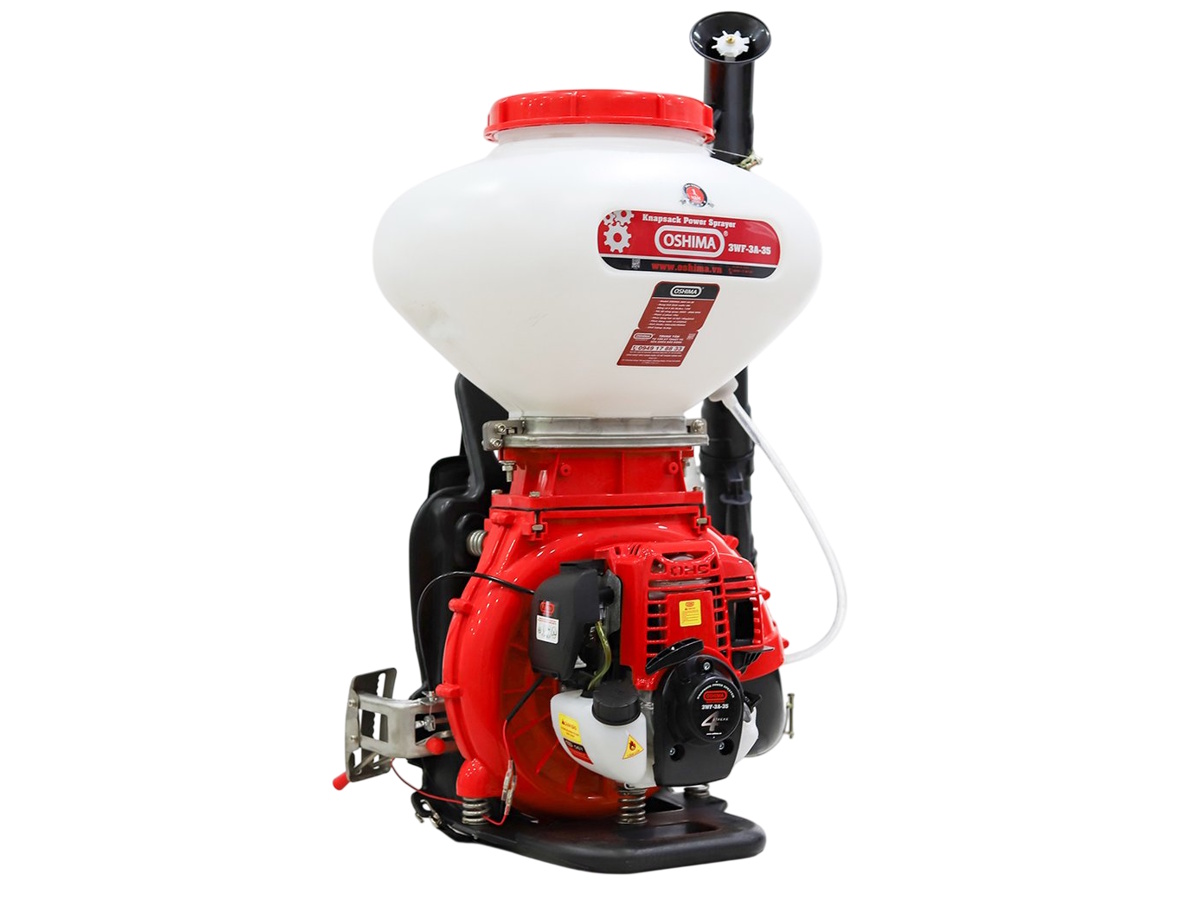 - Máy phun thuốc trừ sâu Oshima 3WF-3A-35 tích hợp 3 chức năng gồm phun thuốc trừ sâu, phun hạt và phun bột.