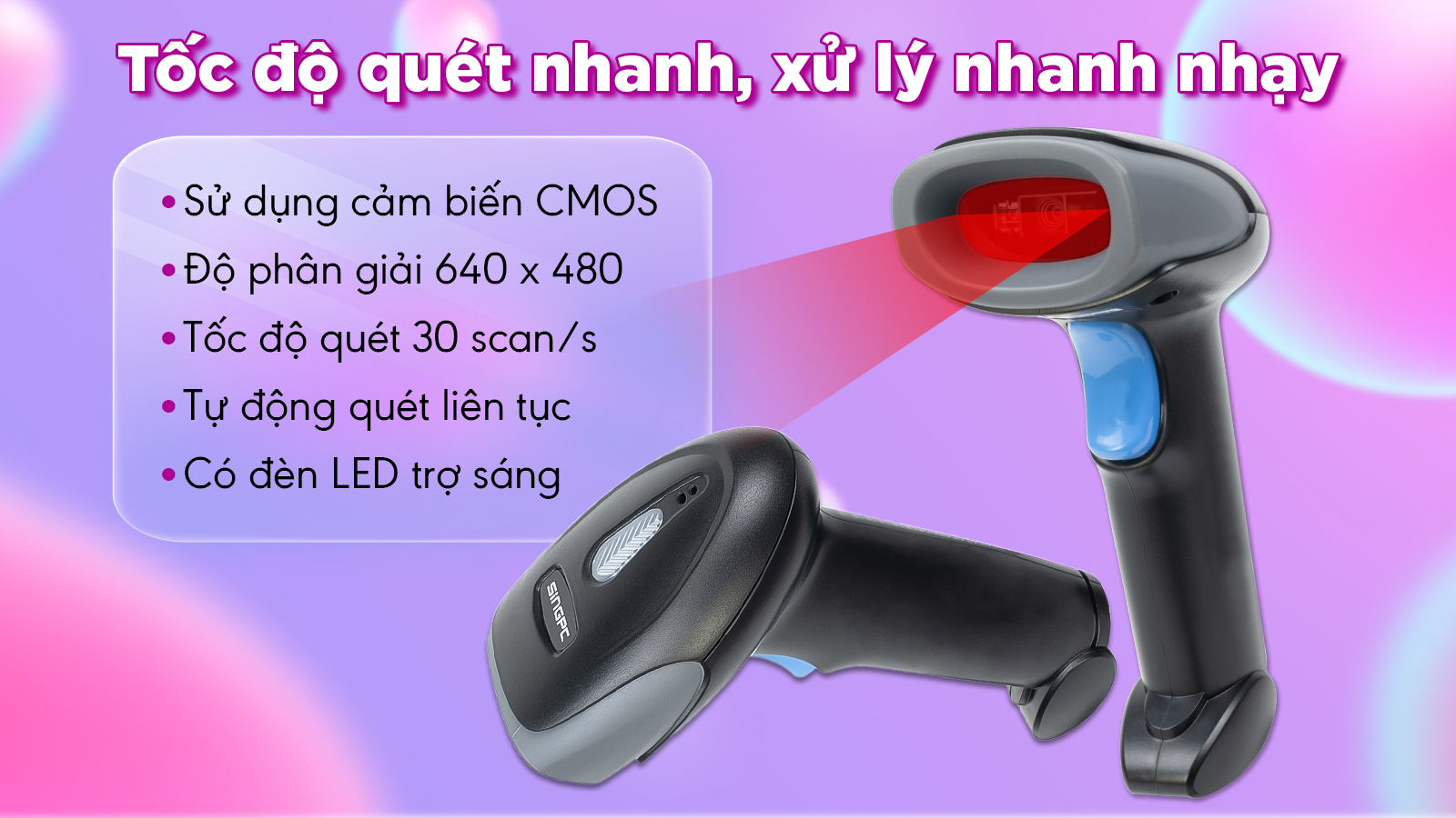 - Quét mã vạch nhanh chóng: Tốc độ quét lên đến 30 lần/giây, giúp quét mã vạch liên tục và nhanh chóng.