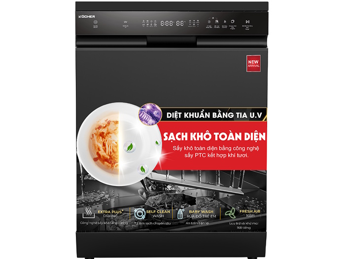 Kocher X15B UV không chỉ đơn thuần là một chiếc máy rửa bát thông minh, mà còn là thiết bị tích hợp công nghệ diệt khuẩn UV, sấy độc lập và khả năng lưu trữ bát đĩa khô đến 7 ngày. Với thiết kế sang trọng, dung tích lớn, vận hành êm ái và tiết kiệm nước, đây là trợ thủ đắc lực giúp bạn rảnh tay hơn sau mỗi bữa ăn. X15B UV mang lại không gian sạch sẽ, tiện nghi và an toàn tuyệt đối cho gia đình.