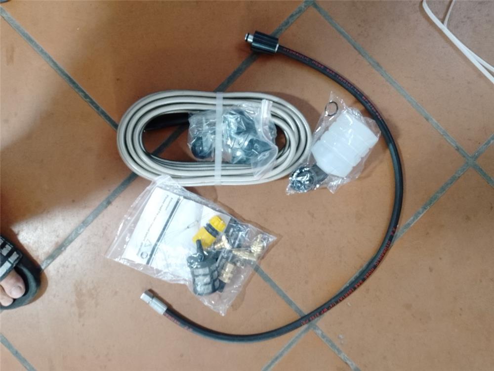 - Máy đi kèm đây hút nước, đầu lọc nước, bình xà phòng, dây phun áp lực 10m.