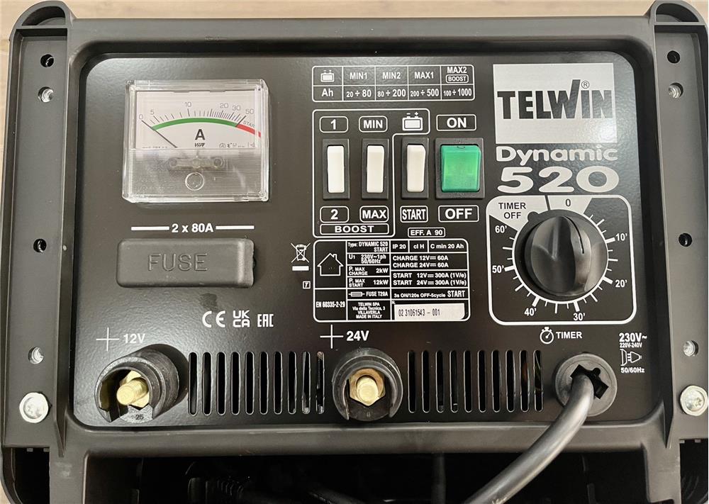 Máy sạc ắc quy Telwin Dynamic 520 Start có điện áp 12/24V có thể dùng để khởi động tất cả các loại xe hơi, xe vans và xe tải nhẹ. Thiết bị có thể tùy chọn dễ dàng giữa các chế độ sạc thường, sạch nhanh (BOOST) và khởi động nhanh.