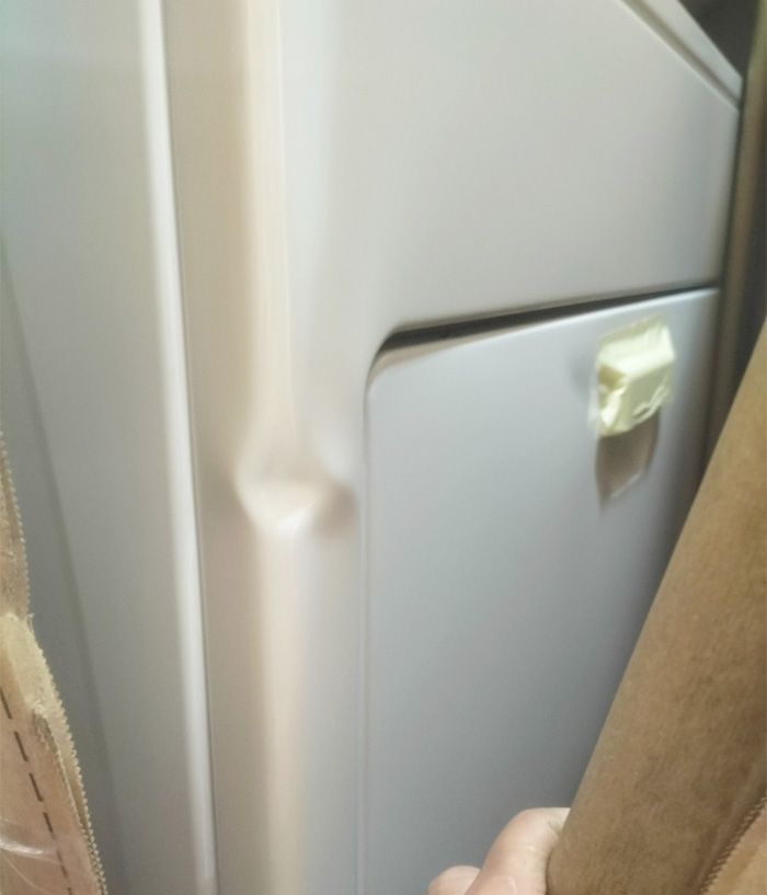Thanh lý máy sấy quần áo 15kg Whirlpool 3LWED4815FW0 tại kho Hồ Chí Minh do trong quá trình vận chuyển lưu kho, thân máy bị móp.