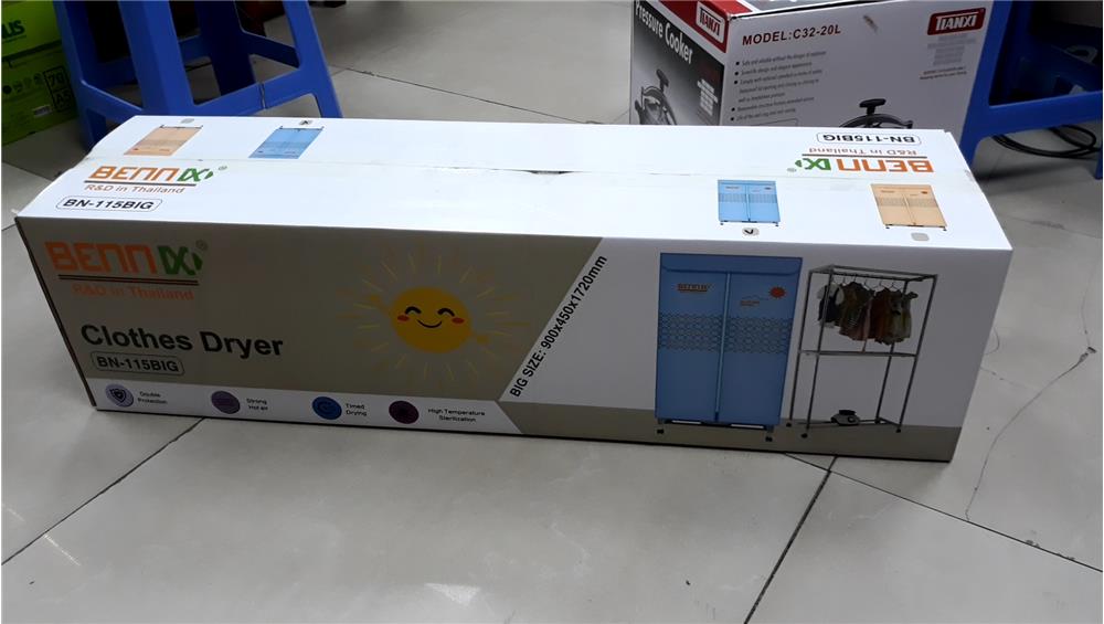 Tủ sấy quần áo Bennix BN-115BIG là thiết bị sấy tiện lợi, giúp quần áo khô nhanh, thơm tho và luôn trong trạng thái mềm mại, sạch sẽ. Với công suất mạnh mẽ, dung tích sấy lớn cùng công nghệ sấy tĩnh điện tiên tiến, BN-115BIG không chỉ tiết kiệm thời gian mà còn bảo vệ sợi vải tối ưu. Nếu bạn đang tìm kiếm một máy sấy quần áo chất lượng, bền đẹp, hiệu quả cao, thì đây chắc chắn là lựa chọn lý tưởng cho gia đình bạn trong mùa mưa ẩm hoặc khi thời tiết nồm kéo dài.