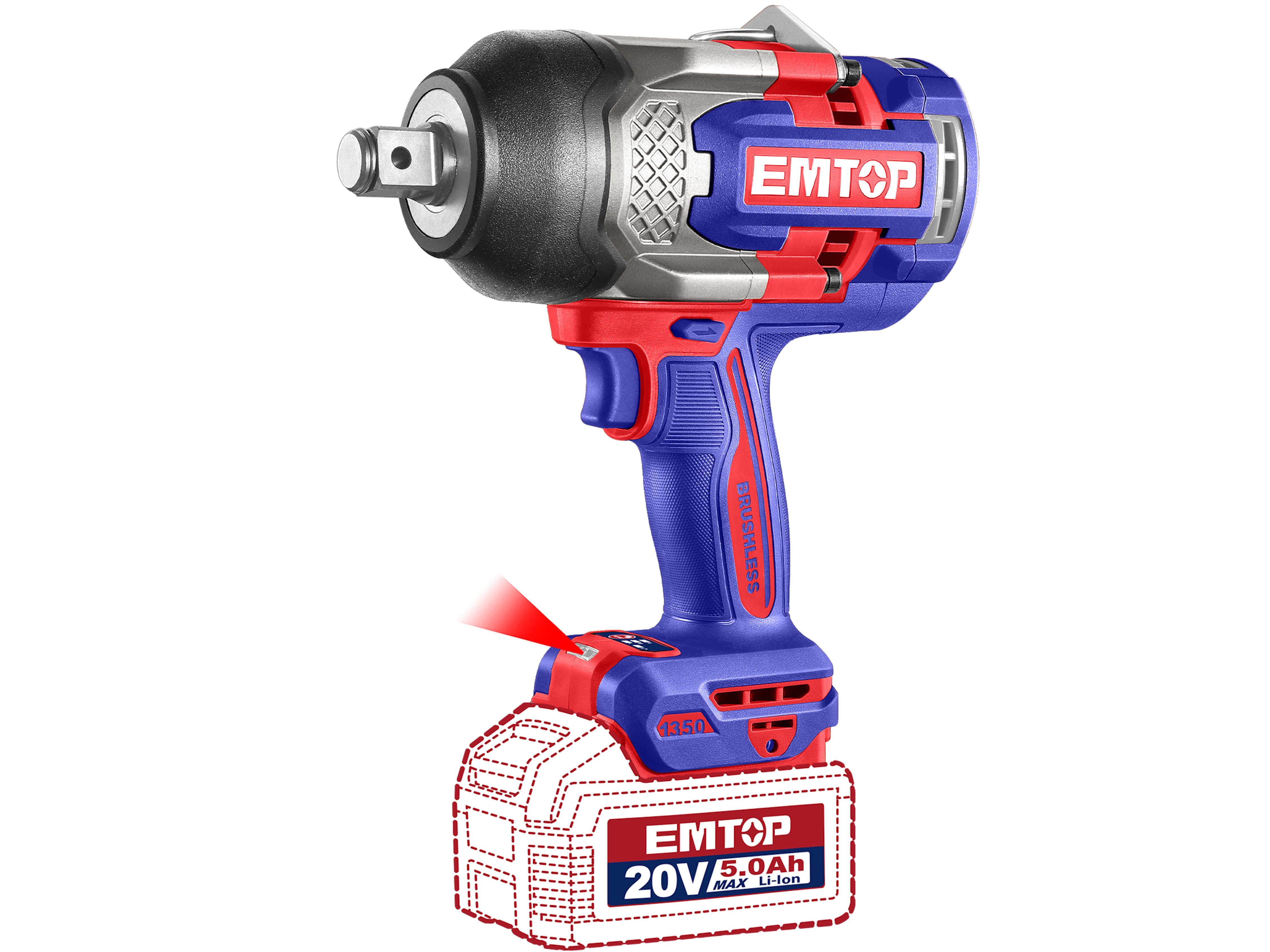 Điểm mạnh nổi bật của máy siết bulong pin 20V EMTOP ECIWL201351