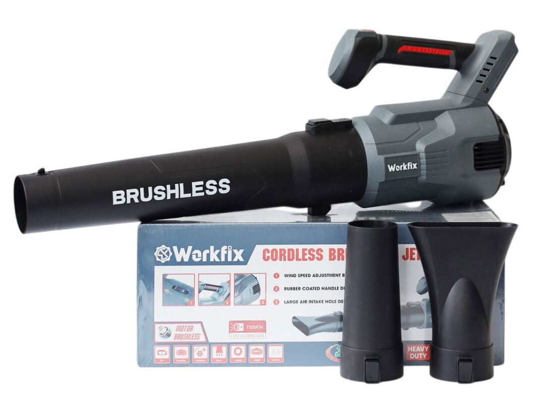 Máy thổi lá Workfix WF-LB03BL là lựa chọn lý tưởng để làm sạch sân vườn, nhà xưởng, xe cộ hoặc những góc khuất khó vệ sinh. Với công suất mạnh mẽ 1.000W, động cơ không chổi than bền bỉ cùng pin dung lượng cao 21V - đây là thiết bị không thể thiếu cho nhu cầu làm sạch chuyên nghiệp.