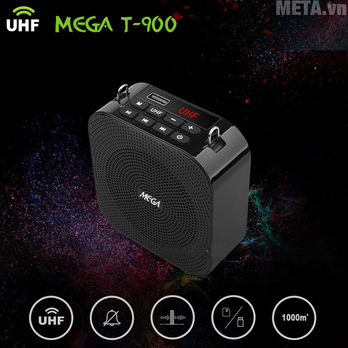 Máy trợ giảng MEGA T-900 UHF là loại máy trợ giảng không dây, hỗ trợ kết nối bluetooth, USB và thẻ nhớ 32GB, Micro Wireless Bluetooth tần số riêng, chất lượng cao, không lẫn sóng bất kỳ với sản phẩm nào khác.