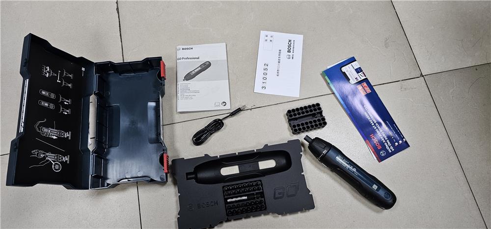 So với máy vặn vít Bosch GO Gen 2 thì ở model này có thêm bộ phụ kiện 32 chi tiết. Máy bắt vít dùng pin sạc 3.6V, đi kèm dây sạc để nạp điện cho máy. Cổng sạc bố trí ở đuôi máy.