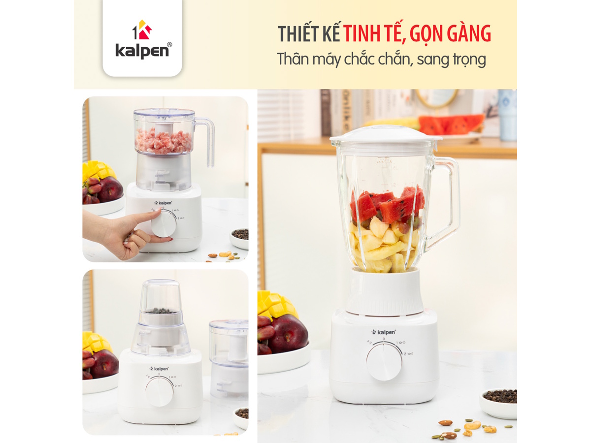 Máy xay Kalpen B8 được trang bị bộ cối 3 trong 1 giúp người dùng dễ dàng chế biến nhiều loại thực phẩm khác nhau: