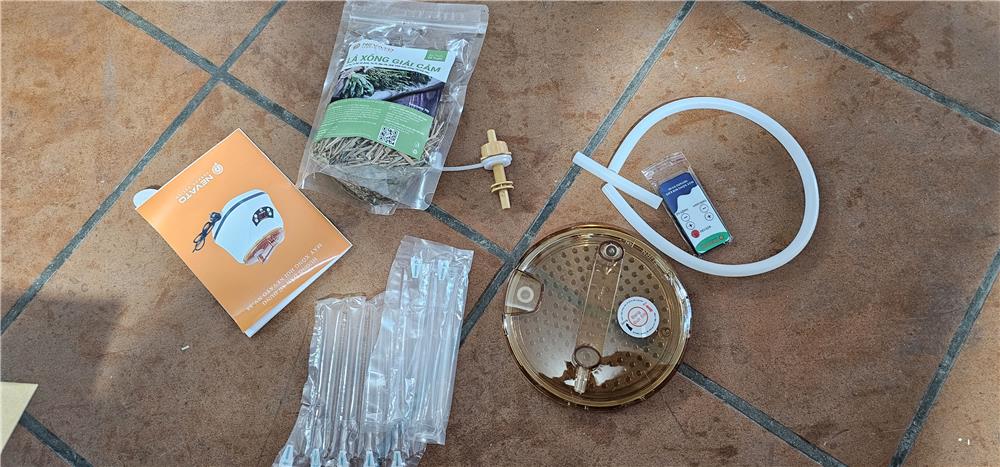 - Bước 1: Nối một đầu của ống dẫn hơi vào nắp, sau đó cho khoảng 2 lít nước vào máy, đậy nắp vặn chặt theo gờ đã cố định.