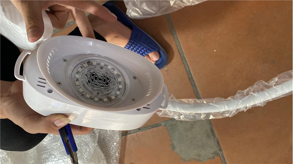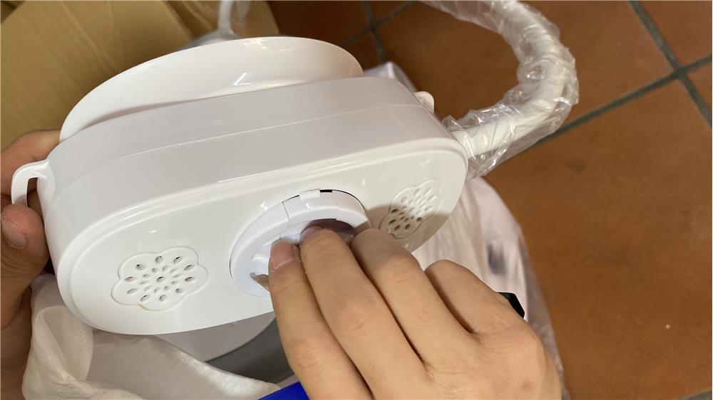 Bỏ ngải cứu vào hộp đựng (lưu ý dùng dụng cụ gắp tránh gây bỏng tay), đổ nước vào hộp đựng ngải cứu nếu sử dụng xông ướt (xông khô thì không cần đổ nước), sau đó cắm điện và bật công tắc nguồn phía sau máy, màn hình sẽ sáng lên.