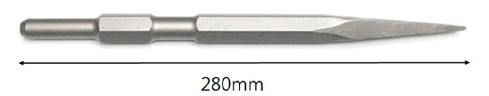 - Mũi đục có chiều dài 280mm sẽ phù hợp với các công việc đục phá mạnh mẽ hoặc tạo chi tiết đặc biệt trên bề mặt vật liệu.