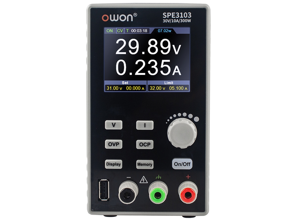 OWON SPE3103 cung cấp công suất lên đến 300W sẽ đáp ứng đầy đủ nhu cầu thử nghiệm các mạch điện tử và các ứng dụng cần nguồn điện ổn định.