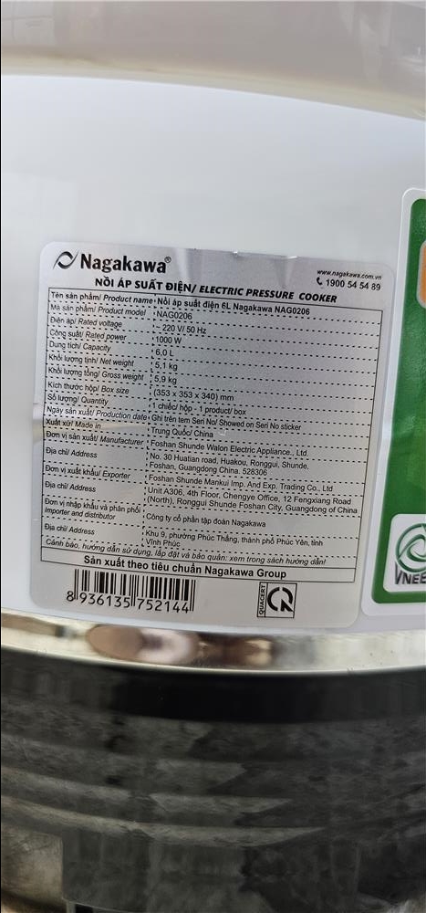Đánh giá Nồi áp suất điện Nagakawa NAG0206 6 lít