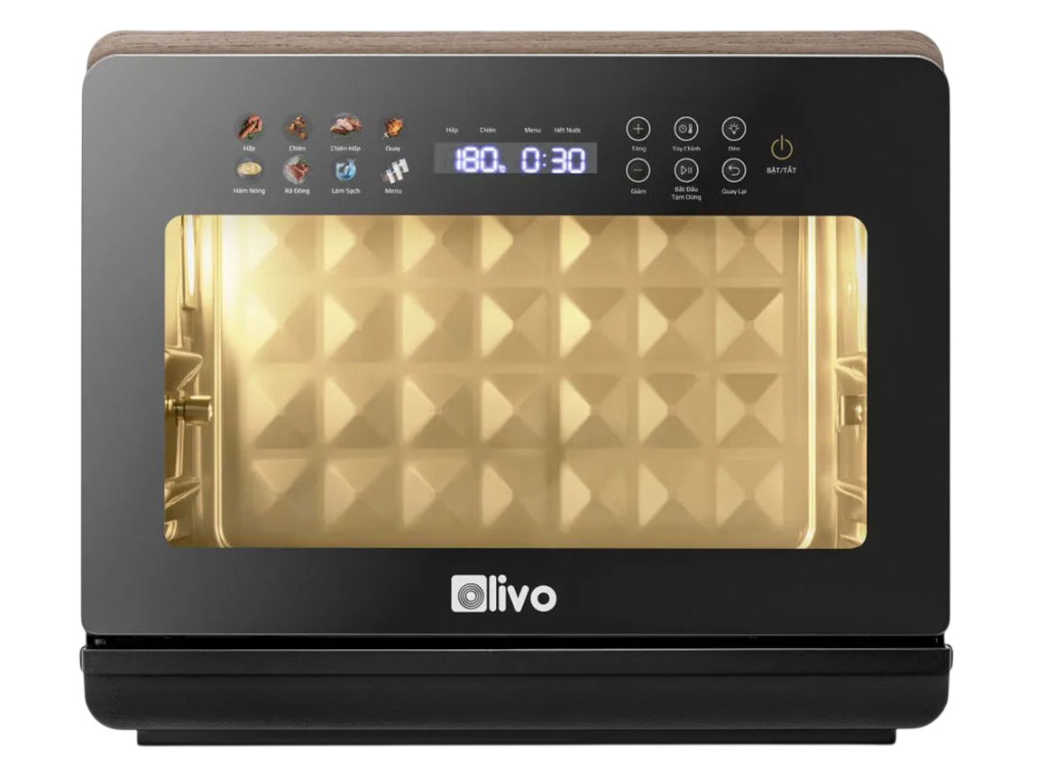 Bảng điều khiển cảm ứng OLED của Olivo SteamFry Xtra không chỉ tạo điểm nhấn về thiết kế mà còn nâng cao trải nghiệm sử dụng với các biểu tượng trực quan và chú thích bằng tiếng Việt. Chỉ cần chạm nhẹ, các thao tác đều được phản hồi nhanh chóng và chính xác.