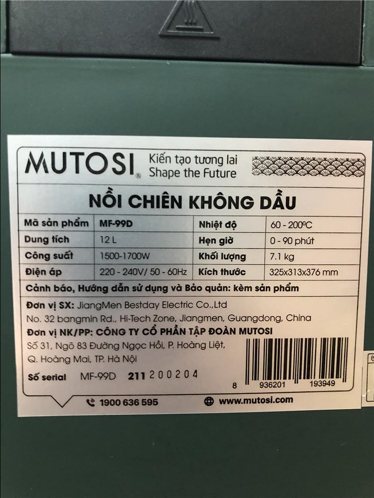 Đánh giá Nồi chiên không dầu Mutosi MF-99D - 12 lít