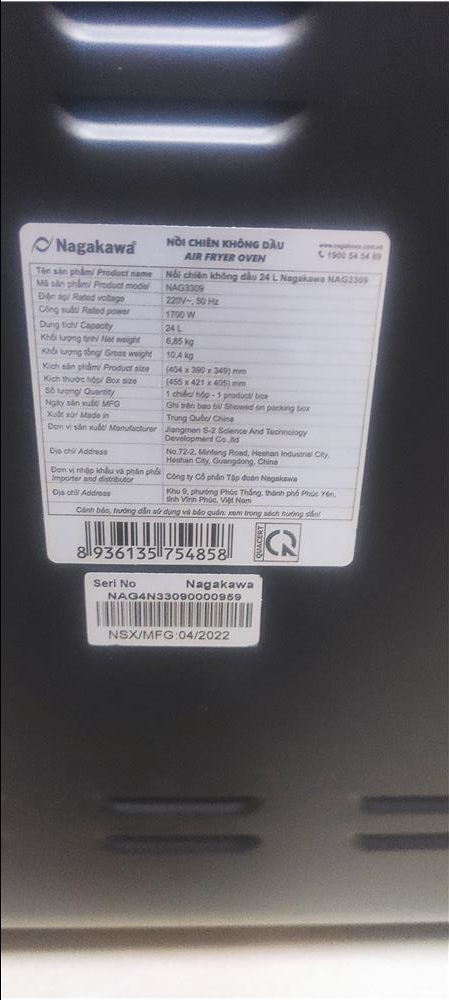 Đánh giá Nồi chiên không dầu cảm ứng Nagakawa NAG3309 (24 lít)