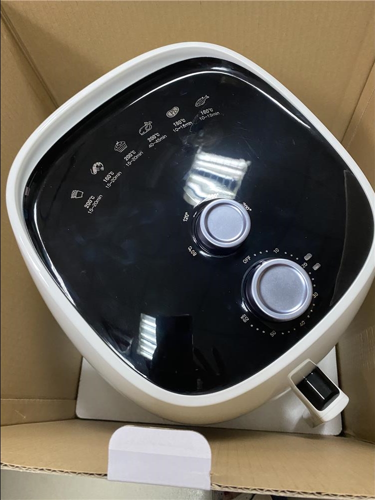 Bảng điều khiển dạng núm vặn cơ dễ tùy chỉnh nhiệt độ và thời gian. Giá chiên và khay chiên có chống dính, dễ vệ sinh.